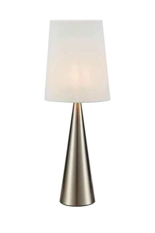 Conus bordslampa från Markslöjd. Konformad bas i metall och skärm i textil. 2m pvc kabel med brytare på sladden och väggkontakt. 1xE14, max 40W. Ljuskälla ingår ej.
