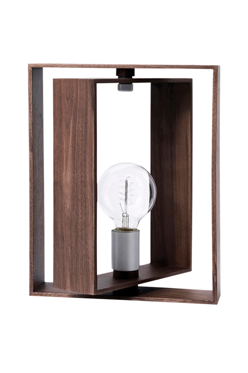 Frame är en stilren bordslampa i valnöt eller vitlackerat trä. Höjd 50cm, bredd 32cm. Textilsladd, 2 meter, med strömbrytare. Till lampan behöver du en ljuskälla med E27-sockel, max 1*60W. Använd gärna en filamentljuskälla med globform. Ljuskälla ingår ej.