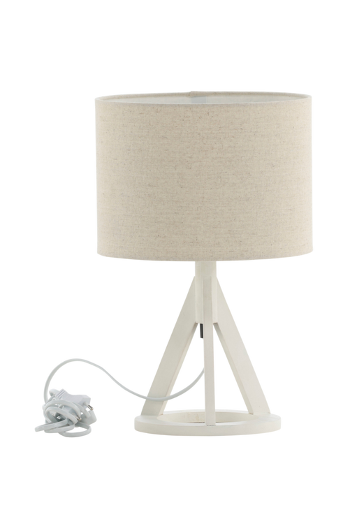 Kona bordslampa i gummiträ med linne lampskärm med en ljuskälla. Enklare montering krävs. Ljuskälla ingår ej.