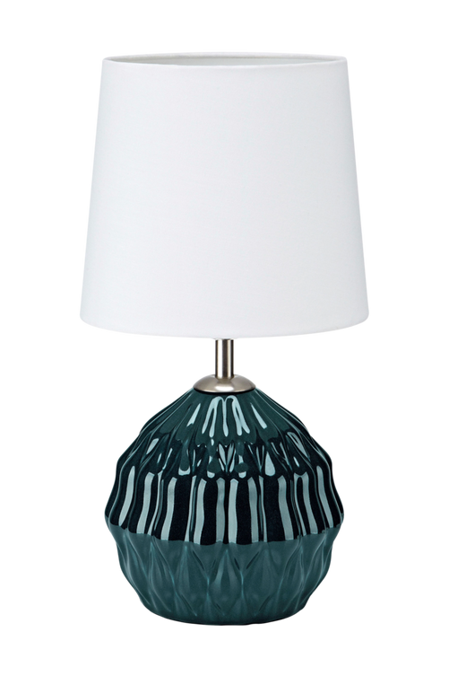 Bordslampa Lora från Markslöjd. Fot i porslin och skärm i vit textil. E14 max 40W, ljuskälla ingår ej. Bredd 19 cm, höjd 34,5, djup 19 cm.