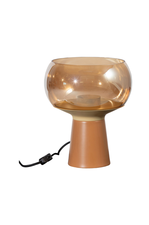 70-talslampa med en modern twist Champagnefärgat glas och metallfot Passar med ljuskälla E27, max. 40 W H 28 x Ø 24 cm Bordslampan Mushroom tar oss tillbaka till 70-talet. Retro, men med en modern twist. Mushroom ingår i en kollektion från det nederländska märket BePureHome. Mushroom är tillverkad i champagnefärgat glas med sirapsfärgad fot i keramik. Mushroom sprider ett trevligt, mjukt ljus genom det färgade glaset. Bordslampan Mushroom har en svart textilsladd som är 1,8 meter lång och är utrustad med en strömbrytare. Mushroom passar med ljuskälla E27, max. 40 W. Ljuskälla medföljer ej. Det går att ansluta lampan till en dimmer. Lampans nederdel har en diameter på 11,5 cm.