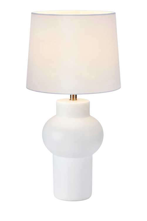 Shape bordslampa från Markslöjd. Bas i keramik och skärm i textil. 2 meter pvc kabel med strömbrytare på sladden och väggkontakt. 1xE27 sockel, max 40W. Ljuskälla ingår ej.