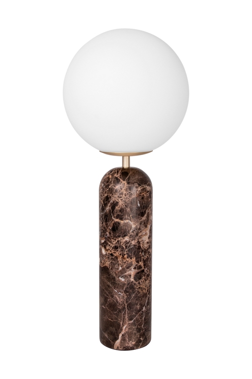 Torrano i vacker solid marmor blir en lyxig inredningsdetalj som verkligen tar plats i rummet. De runda formerna tillsammans med den hårda marmorstenen bildar en spännande kontrast. Denna lampa är gjord i solid marmor med en marmorering, har en glaskupa i opalglas, borstade metalldetaljer samt en 200 cm lång transparent kabel med brytare. Design: Patrik Hall. Bredd 22 cm, Djup 22 cm, Höjd 53 cm. Lamphållare: 1xE14, Max 40W, IP20. Rekommenderad Ljuskälla: L167