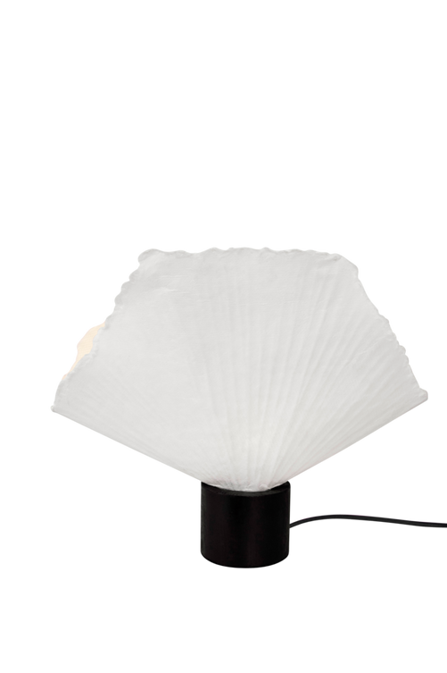 Bordslampan Tropez för tankarna till Medelhavet och Franska rivieran, dels tack vare sitt spännande material och dels för sin böljande form. Lampan är tillverkad av Papier-maché, franska för tuggat papper, dvs papper och lim. Pappret är återvunnet och oblekt. Pappersskärmen vilar på en fot i svartlackat trä och har en 200 cm lång tvistad svart textilkabel med brytare. Vi rekommenderar varsamhet vid uppackning. Bredd 43 cm, djup 22 cm och höjd 35 cm. Lamphållare: 1xE27. Max 60W. Ljuskälla medföljer ej.