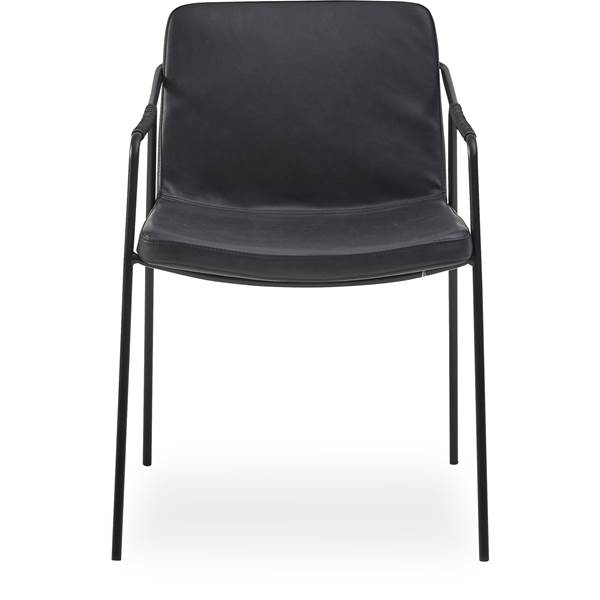 matstol, med armstöd, maxbelastning 120 kg och siddehøjde 47 cm. – Sits i vintage grått konstläder och ben i svartlackerad metall