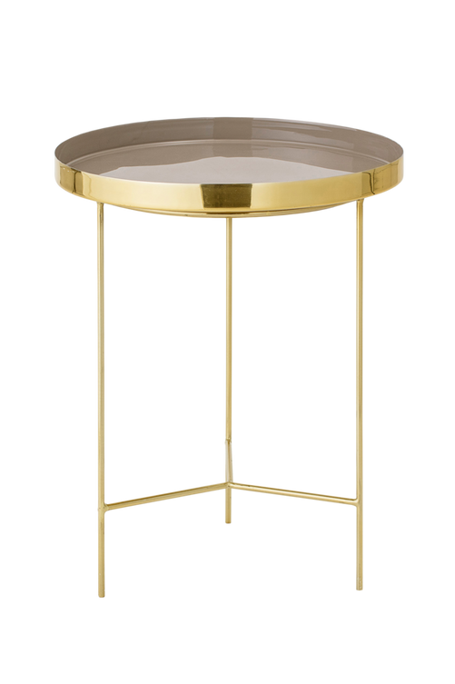 Placera dina finaste prydnadsföremål på det snygga brickbordet Sola från Bloomingville. Det har en avtagbar bricka av aluminium och en fin stomme av stål. Sola brickbord är en dekorativ möbel som lyser upp vilket rum det än står i. Brickans insida är målad, för att skapa en vacker kontrast mot metallen på utsidan. Enklare montering.