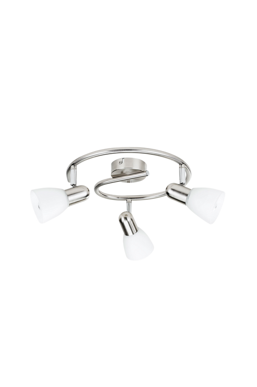 Rikta ljuset som du vill Speciellt designad för vardagsrum och sovrum. Välj Philips E14 LED-lampa för att säkerställa ett högkvalitativt och hållbart ljus. Särskilda egenskaper – Justerbara huvud – Ljuskälla ingår ej Design och finnish – Material: Metall, glas – Färg: Matt krom Produktens mått och vikt – Höjd: 19,5 cm – Längd: 29 cm – Bredd: 29 cm – Nettovikt: 0,900 kg Tekniska specifikationer – Nätspänning: Område 220 V – 240 V, 50-60 Hz – Antal lampor: 3 – Fattning: E14 – Ljuskälla ingår ej – Maximal watt per ljuskälla: 40 W – LED: Ingår ej – Inbyggd LED: NEJ – Armatur är kompatibel med lampor i klassen: A ++ till E – IP-kod: IP20, skydd mot föremål större än 12,5 mm, inget skydd mot vatten – Skyddsklass: I – jordad