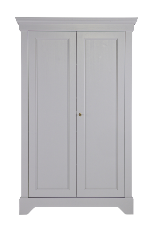 Detta är ett brocanteskåp tillverkat av solid tall. Skåpet är lackat med en vattenburen lack. Detta förvaringsskåp är tidlöst och passar i alla livsstilar. De fyra hyllorna i detta skåp är tillverkade av melamin spånskiva. Dörrarna har massiva metallgångjärn och ett lås med nyckel. Isabel-förvaringsskåpet levereras omonterat men är lätt att montera med hjälp av medföljande monteringsanvisningar. Mått: Höjd 191 x Bredd 118 x Djup 47 cm
