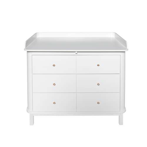 Artikelnamn: 041366 WOOD PUSLEKOMMODE, 6 SKUFFER M. STOR PUSLEPLADE, HVID/HVID.