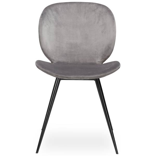 matstol, maxbelastning 120 kg och siddehøjde 47 cm. – Sits i aluminiumfärgad sammet och ben i svartlackerad metall