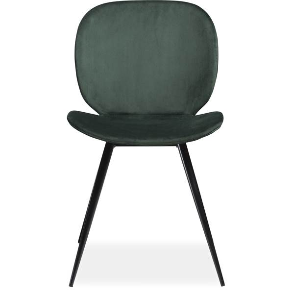 matstol, maxbelastning 120 kg och siddehøjde 47 cm. – Sits i emeraldgrönt sammetstyg och ben i svartlackerad metall