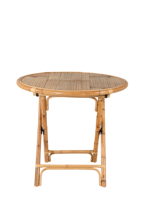 Cannes cafébord med en rund topp i bamboo och bordsben i rottning. Bordets mått: Diameter: 90cm, Höjd: 79.5cm. Bordet kräver enklare montering.