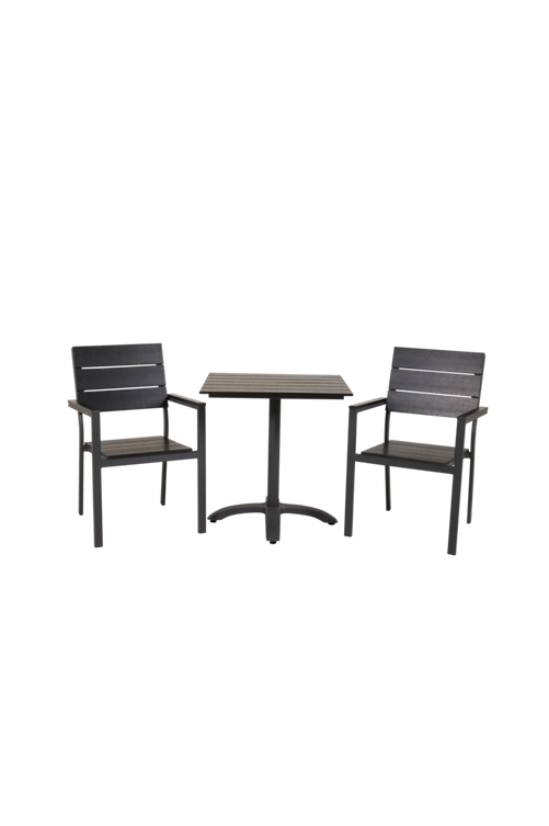 Costa cafébord med en rund topp och bordsben i aintwood. Bordets mått: Längd: 70cm, Bredd: 70cm, Höjd: 74cm. Matchas med 2st stapelbara Louis matstolar i aintwood och stolsben i aluminium. Stolens mått: Totalhöjd: 89cm, Bredd: 42,7cm, Djup: 45,5cm, Sitthöjd: 41cm. Bord och stol kräver enklare montering.