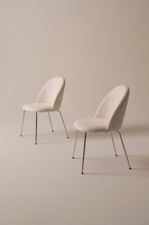 2-pack stolar med klädsel av fint bouclétyg med struktur och kromade, lätt utställda stålben. Baksidan av ryggstödet har dekorativ quiltsöm, vilket gör stolen extra snygg vid ett matbord. Både ryggstöd och sits är bekvämt mjukstoppade med polyesterskum på en stomme av plywood. CALLAHAN är en bekväm stol som passar fint vid långa mysiga middagar, det är lätt att bli sittande länge. Material: Plywood, polyesterskum, järn och polyestertyg. Storlek: Höjd 82 cm, bredd 51 cm, djup 55 cm, sitthöjd 46 cm, sittdjup 43 cm. Skötselråd: Dammsugning. Tips/råd: CALLAHAN passar också bra i ett konferensrum på arbetsplatsen.