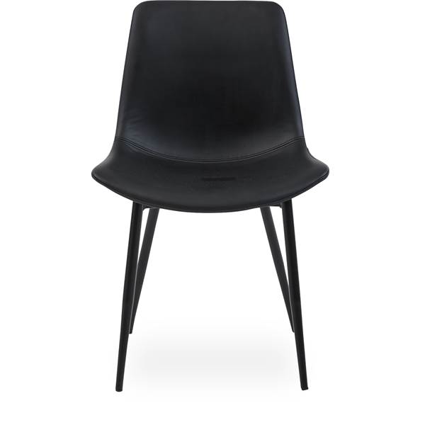 matstol, maxbelastning 110 kg och siddehøjde 45 cm. – Sits i svart läder och ben i svart pulverlackerat stål
