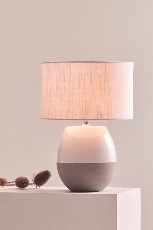 Bordslampa med fot av terrakotta som fått trendig cementlook mixat med vit glasyr vilket matchar den raka, stilrena linneskärmen perfekt. Den lyckade kombinationen av strikt skärm och mjukt rundad fot är lätt att matcha i många olika stilar. Skärmen har metallstomme. Material: Keramik, linne och metall. Storlek: Total höjd 41,5 cm. Fot: ø 20 cm, höjd 24 cm. Skärm: ø 30 cm, höjd 18 cm. Sockel/lampa: 1 st E14, max 40 w. Ljuskälla medföljer ej. Tips/råd: Matcha lampan med nya linnegardiner och hela rummet känns förnyat.