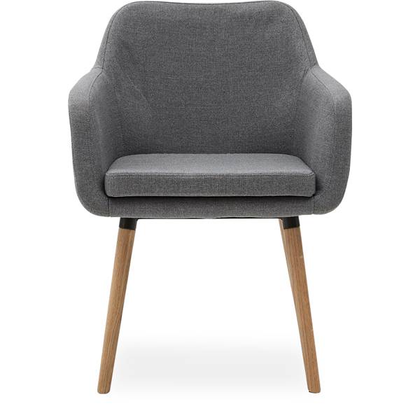 matstol, maxbelastning 120 kg och siddehøjde 49 cm. – Sits i ljusgrå tyg och ben i oljebehandlad ek