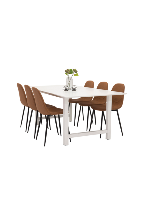 Matgrupp med ett Cissi Matbord samt sex stycken Penally Matstolar. Mått: 220L, 100W, 75B Mått:43L, 43,5W, 85,3B