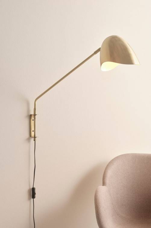 Vägglampa i metall, skärmen har blank, vit insida som reflekterar ljuset fint. Den asymmetriska skärmen är riktbar. Sladd av plast med EU-anpassad kontakt och strömbrytare på sladden. Lampan är ojordad, klass 2. Material: Metall och plast. Storlek: Höjd 54 cm, längd 64 cm, bredd 19 cm. Armlängd 49 cm. Skärm höjd 18,2 cm, ø 19,52 cm. Väggfäste längd 12 cm. Sockel/lampa: 1 st E14, max 25 w glödlampa. Ljuskälla medföljer ej. Tips/råd: En vägglampa har många användningsområden och placerar du CLEO med lite fantasi kan du ge rummet en helt ny look.