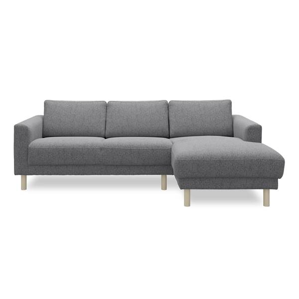 3 sits högervänd Soffa med schäslong, inkl. ben, siddehøjde 47 cm, exklusive nackstöd. – Riviera 53 light grey tyg, ben i vitoljad furu och sits: polyeterskum rygg: polyeterskum