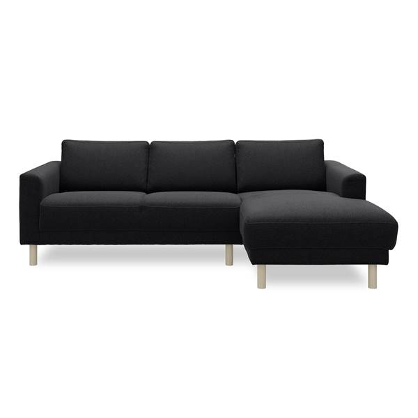 3 sits högervänd Soffa med schäslong, inkl. ben, siddehøjde 47 cm, exklusive nackstöd. – Riviera 51 antracit tyg, ben i vitoljad furu och sits: polyeterskum rygg: polyeterskum