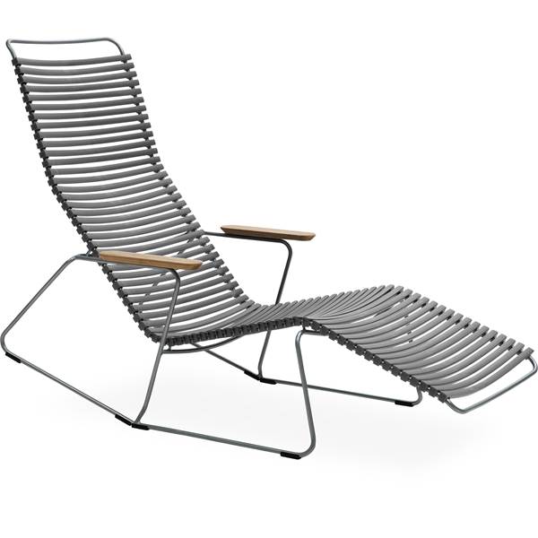 Sunrocker, siddehøjde . – Mörkgrå plastlameller fv 70, stomme i stålgrå metall och armstöd i bambu