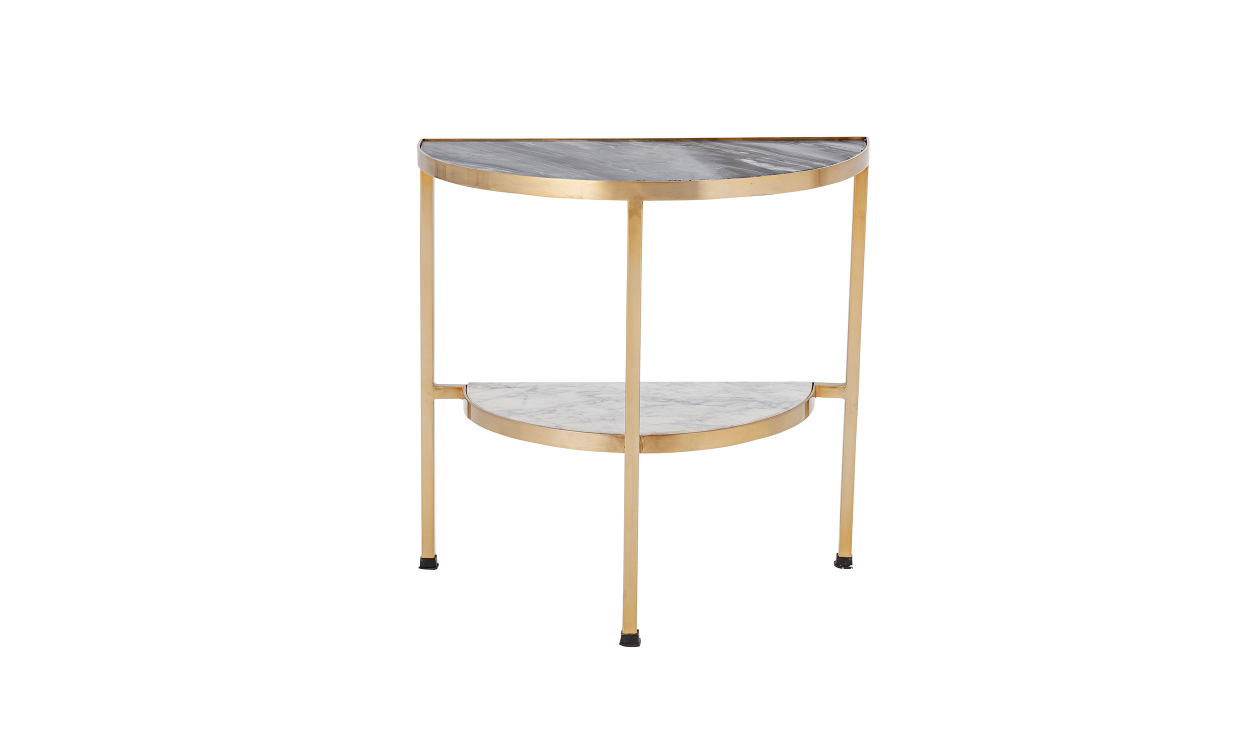 Sidobord från Bloomingville med guldig ram och skivor i off white marmor. Clint ger ditt hem en exklusiv känsla och är perfekt för synlig förvaring. Passar som sidobord men även som exempelvis nattduksbord. Design & egenskaperElegant sidobord med skivor i marmor.Två hyllplan som vardera tål 10 kg.Rengörs med fuktig trasa. Leverans & förpackningAntal förpackningar: 1 stFörpackningsmått totalt: 62x57x33 cmTotalvikt: 12,5 kg