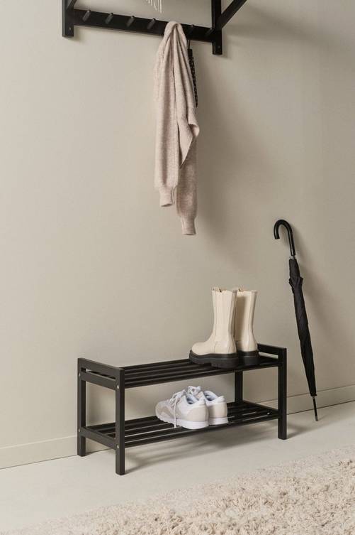 Skohyllan COLE är av FSC-märkt furu med såpad yta. COLE har två hyllor för skor och frigör golvyta i till exempel hallen eller groventrén. Viss montering krävs. Monteringsanvisning medföljer. Produkten är certifierad med FSC vilket innebär att den består av trä som är avverkat från ett ansvarsfullt skogsbruk som tar hänsyn till människor och miljö. Material: Furu. Storlek: Höjd 35 cm, bredd 75 cm, djup 30 cm. Frihöjd under möbel 10 cm. Maxvikt: 10 kg per hylla. Skötselråd: Torkas av med lätt fuktad trasa. Tips/råd: Skohyllan COLE är perfekt att matcha med krokbrädan och hatthyllan i serien, eftersom de har samma bredd.