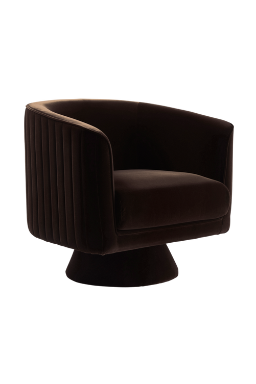 En lyxig och inbjudande sammetsfåtölj med härligt rund form och dessutom snurrfot så fåtöljen kan rotera 360 grader. Även foten är sammetsklädd. Fåtöljen har passpoalkanter och lodräta quiltsömmar runt ryggen. Material: 89% bomull, 11% polyester, trästomme och skumfyllning. Storlek: Höjd 80 cm, bredd 75 cm, djup 79 cm. Sitthöjd: 47, Sittdjup: 55 cm. Maxvikt: 90 kg. Martindale: 50 000. Skötselråd: Dammsugning. Formgivare: Jotex Design Studio.