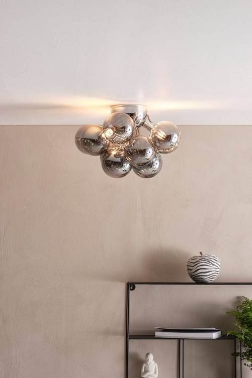 Takplafond av kromfärgad metall med runda kupor i glas med dekorativt mönster. Takplugg ingår ej p.g.a. EU-regler. Den finns att köpa separat och heter ROOF EARTH takplugg. Material: Metall och glas. Storlek: Höjd 22,5 cm, ø 40 cm. Sockel/lampa: 3 st G9, max 3w glödlampa. Ljuskälla medföljer ej. Tips/råd: Kombinera med G9 LED dimbar, 2-pack, 1585814-01.