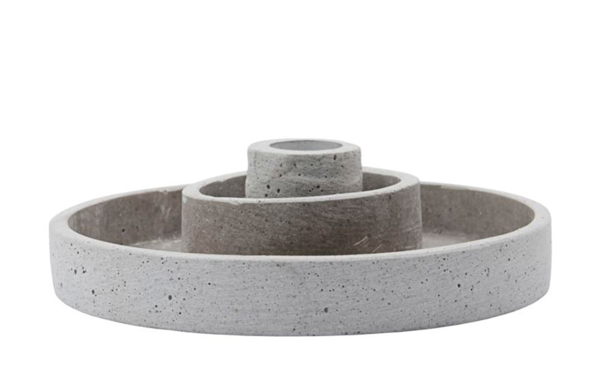 Daca ljushållare från House Doctor är innovativ och mångsidig i sin design. Den är gjord av grå polystone som skapar en känsla av cement och ger ljushållaren en mer industriell känsla. En trevlig funktion är att den lilla inre ljushållaren kan tas bort och användas på egen hand samtidigt som det då går att sätta ett stort pelarljus i den stora ljushållaren. Gör Daca ljushållare mer personlig genom att pryda den med dekorativa grenar och lingonris. Placerade den på middagsbordet eller låt den lysa upp dina kvällar på soffbordet.Design & egenskaperInnovativ design med en industriell känsla.Materialet är Polystone som liknar cement.Den lilla inre ljushållaren och använda den på egen hand och ger plats för ett stort pelarljus i den stora ljushållaren.Ljusstaken har en diameter på 15 cm och en höjd på 4 cm.Vikt: 0.5 kg.