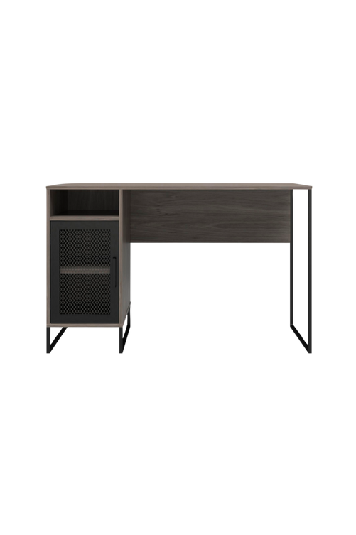 Arbeta eller plugga hemifrån med stil vid datorbordet Purdue Single Pedestal Computer Desk. Det är tillverkat av hållbar laminerad MDF, spånskiva och stabil pulverlackerad metall. Den stora arbetsytan är perfekt för en laptop eller flera skärmar, och bakom skåpsdörren finns två hyllor (varav en justerbar) så att du kan förvara papper, böcker, dokument och annat kontorsmaterial på bekvämt avstånd. Facket ovanför skåpet erbjuder ännu mer förvaringsutrymme för t.ex. pennor, skrivblock och post-it-lappar. Kombinera gärna datorbordet med det matchande skåpet Purdue Storage Cabinet (säljs separat) om du behöver ännu mer utrymme för skrivare och annat kontorsmaterial. Skåpsdörren är designad med ett dekorativt metallnät samt ett smidigt och säkert magnetlås. Monterat mäter skrivbordet B121 x D50 x H76 cm. Vikt: 26,5 kg. Skrivbordet levereras i ett platt paket. Vi rekommenderar att två vuxna monterar produkten.