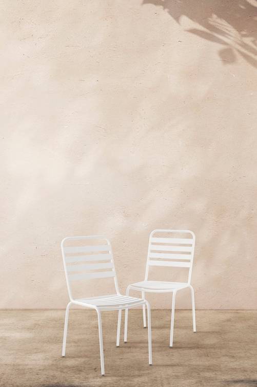 2-pack stolar av pulverlackerad aluminium. Stolarna är praktiska vid alla tillfällen och den nätta modellen ryms också på balkongen. DEIA är i aluminium så du kan ha stolarna utomhus utan att de rostar och de är lätt att torka av. Stolarna är stapelbara. Material: Aluminium. Storlek: Höjd 85,5 cm, bredd 45,5 cm, djup 54 cm, sitthöjd 45 cm. Maxvikt: 90 kg. Skötselråd: Torkas av med lätt fuktad trasa. Tips/råd: DEIA passar bra som extrastolar ifall oväntade gäster tittar förbi. Eftersom de är staplingsbara så tar de liten plats.