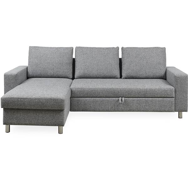 Bäddsoffa, med förvaring, och siddehøjde 45 cm, OBS! tung vara, läs mer i våra leveransvillkor. – Riviera 53 light grey tyg, armstöd 1+1 och S: Pocket R: dun/fiberkulor