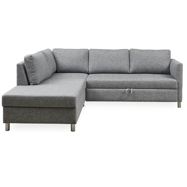 Bäddsoffa, med förvaring, och siddehøjde 45 cm. – Riviera 53 light grey tyg, armstöd 0+2 och sits/rygg: polyeterskum