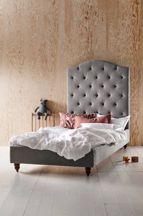 Sängstomme med djuphäftad gavel klädd i 100% linne. En perfekt säng efter det att barnet har vuxit ur juniorsängen. Används med madrass i storleken 90×200 cm. Madrass ingår ej. Viss montering krävs. Monteringsanvisning medföljer. Material: 100% lin, trästomme och skumgummifyllning. Storlek: Bredd 101 cm, längd 200 cm, höjd 140 cm. Skötselråd: Torkas med fuktig trasa. Tips/råd: Förutom bekvämt stöd för ryggen får du ett mjukare intryck med en stoppad sängram.