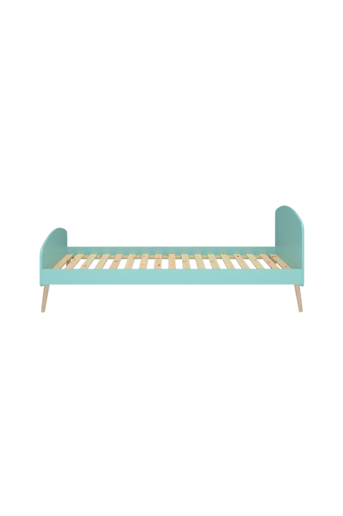 Enkelsäng inklusive trälameller för 90×200 cm madrass (ingår ej) tillverkad i MDF med lackerad yta och ben i massiv obehandlad ek. Enkel självmontering.