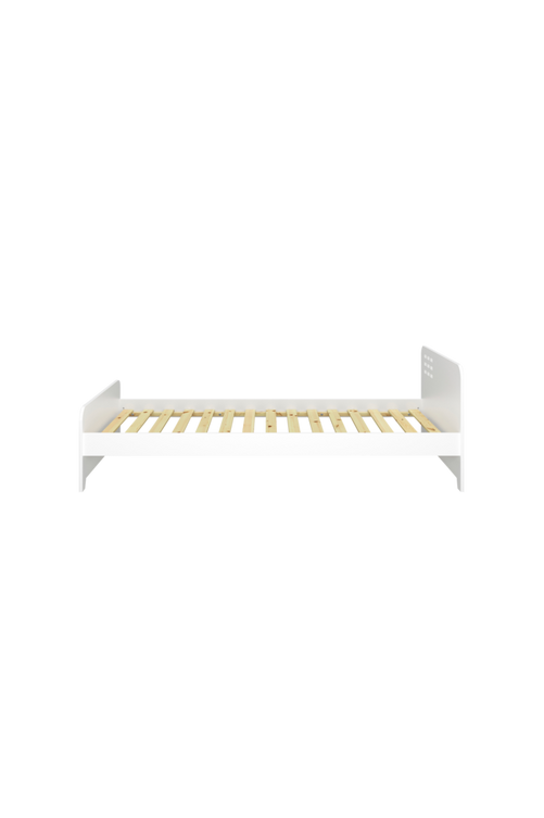 Enkelsäng inklusive trälister för 90×200 cm madrass (ingår ej) tillverkad i FSC-certifierad MDF med lackerad yta. Enkel självmontering.