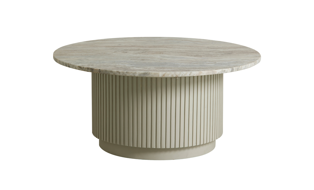 Erie är ett modernt men tidlöst soffbord som speglar en attraktiv blandning av de olika tidsepokerna. Bordet är runt och står på en stomme som pryds av vertikala ribbade detaljer. Bordsskivan är av vacker marmor som speglar en elegans.Design & egenskaperModernt men tidlöst matbord med ribbad stomme och bordsskiva av marmor.Bordet är tillverkat i mangoträ, MDF och marmor.Vid spill eller fläckar, torka genast upp med en fuktig trasa och mild såpa.Leverans & förpackningLevereras monterad.Antal förpackningar: 1 stFörpackningsmått: 45x95x95 cmVikt: 40 kg