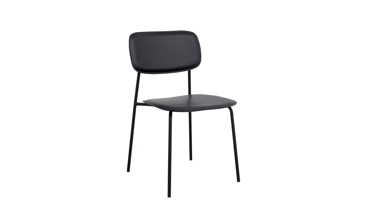 Esa är en stilren stol som flörtar med retro design i modern tappning. Stolens stomme är tillverkad av pulverlackerat järn som kontrasterar fint mot ryggstöd och sittdyna av konstläder. Dynorna är lätt stoppade vilket ökar stolens komfort.Design & egenskaperStilren stol från Nordal.Stomme i pulverlackerat järn och sits samt ryggstöd i konstläder.Stolen är stapelbar.Sitthöjd: 45,5 cm.Max 125 kg.Leverans & förpackningLevereras monterad.Antal förpackningar: 1 st.Vikt: 5,2 kg