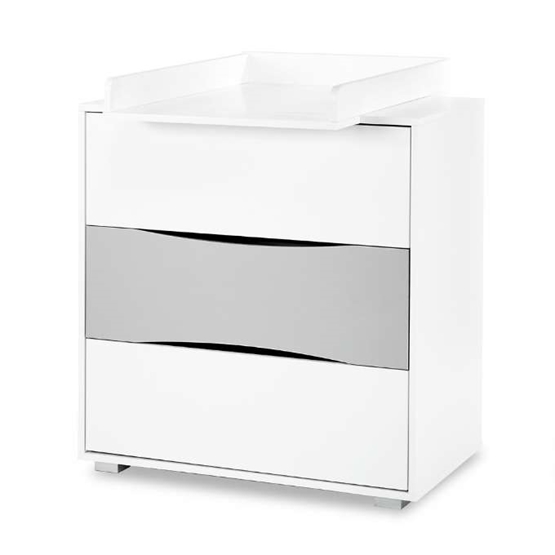 Perfekt i sin enkelhet med neutral färg, estetisk design och säker konstruktion. Detta skötbord skapar tillfredsställelse för barn och föräldrar. Det perfekta stället att förvara kläder, blöjor och andra tillbehör som behövs under bytet.