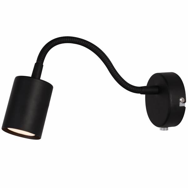 Vägglampa, max. 7W, gu10-sockel och energiklass a++. – Svart metallskärm och flexarm