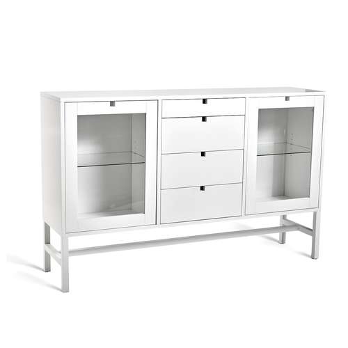 Material, MDF / Massivträ / härdat glas. MDF i stomme, härdat glas i dörrar. Massiv björk i benstativ.
