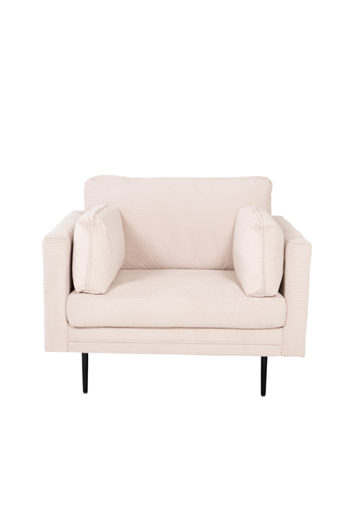 Boel fåtölj i manchester. Tillsammans med ben i metall. Benens mått: Höjd: 20,5cm. Fåtöljen och benen kräver enklare montering.