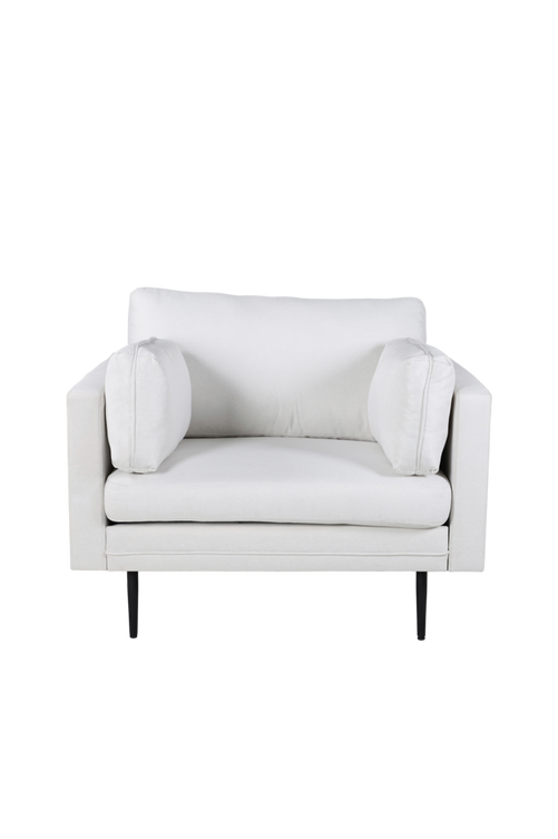 Boom är en fåtölj med klädsel i polyester och ben i metall. Fåtöljens mått: Sitthöjd: 49 cm, Sittbredd: 90 cm, Sittdjup: 53 cm. Fåtöljen kräver enklare montering.