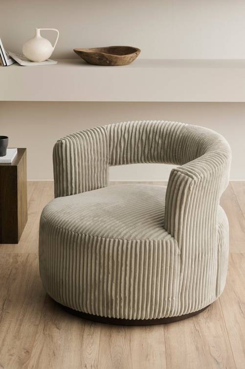 Rund fåtölj med klädsel i bredspårig manchester av polyester. Stomme av massiv furu och plywood. Ram i bok. Skumfyllning. Frihöjd under möbel 4,5 cm. Monterad. Produkten innehåller FSC-certifierat trä, avverkat från ett ansvarsfullt skogsbruk som tar hänsyn till människor och miljö. Vill du titta närmare på ett tyg och känna på kvaliteten? Mejla oss på customerservice@ellos.se eller ring 033-33000 och beställ hem ett gratis tygprov! Ange det artikelnummer du ser längst ner i denna beskrivning.