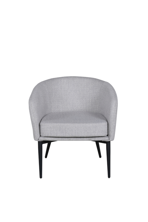 Fåtöljen Fluffy i polyestertyg och ben i metall. Fåtöljens mått: Sittbredd:50cm, Sittdjup:49cm, Sitthöjd:45cm. Fåtöljen kräver enklare montering.
