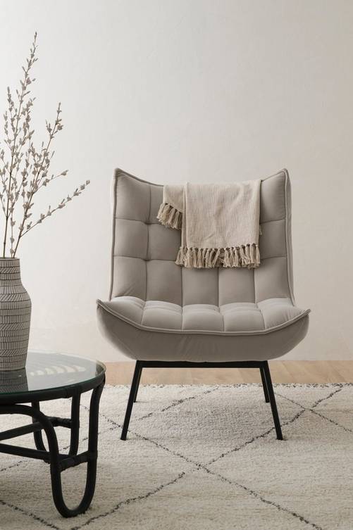 Fåtölj med passpoalkant runt om. Indragningar som bildar ett dekorativt rutmönster. Skumfyllning. Ben av metall. Enklare montering. Bredd: 80 cm Höjd: 101 cm Djup: 80 cm Sitthöjd: 48 cm Sittdjup: 60 cm Vill du titta närmare på ett tyg och känna på kvaliteten? Mejla oss på customerservice@ellos.se eller ring 033-33000 och beställ hem ett gratis tygprov! Ange det artikelnummer du ser längst ner i denna beskrivning. Skötsel av sammet: Sammet är ett mjukt tyg som är enkelt att rengöra och hålla snyggt. Dammsug din möbel och använd ett dammsugarmunstycke med mjuka borst. Ett annat sätt är att använda en självhäftande roller eller en mjuk klädborste. Tänk på att borsta och dammsuga i luggens riktning, rörelsen skall alltså inte gå mothårs. Märken och avtryck kan du få bort genom att använda ånga, antingen från ett ångstrykjärn eller en steamer. Om du spiller på din möbel, fukta fläkten utifrån och in. Använd en trasa eller handduk och badda utan att lägga för mycket tryck på fläcken. Om vätskan är fet, använd ett lämpligt fläckborttagningsmedel (testa först på en mindre synlig plats).