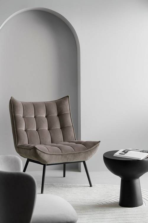 Fåtölj med passpoalkant runt om. Indragningar som bildar ett dekorativt rutmönster. Skumfyllning. Ben av metall. Enklare montering. Bredd: 80 cm Höjd: 101 cm Djup: 80 cm Sitthöjd: 48 cm Sittdjup: 60 cm Vill du titta närmare på ett tyg och känna på kvaliteten? Mejla oss på customerservice@ellos.se eller ring 033-33000 och beställ hem ett gratis tygprov! Ange det artikelnummer du ser längst ner i denna beskrivning. Skötsel av sammet: Sammet är ett mjukt tyg som är enkelt att rengöra och hålla snyggt. Dammsug din möbel och använd ett dammsugarmunstycke med mjuka borst. Ett annat sätt är att använda en självhäftande roller eller en mjuk klädborste. Tänk på att borsta och dammsuga i luggens riktning, rörelsen skall alltså inte gå mothårs. Märken och avtryck kan du få bort genom att använda ånga, antingen från ett ångstrykjärn eller en steamer. Om du spiller på din möbel, fukta fläkten utifrån och in. Använd en trasa eller handduk och badda utan att lägga för mycket tryck på fläcken. Om vätskan är fet, använd ett lämpligt fläckborttagningsmedel (testa först på en mindre synlig plats).
