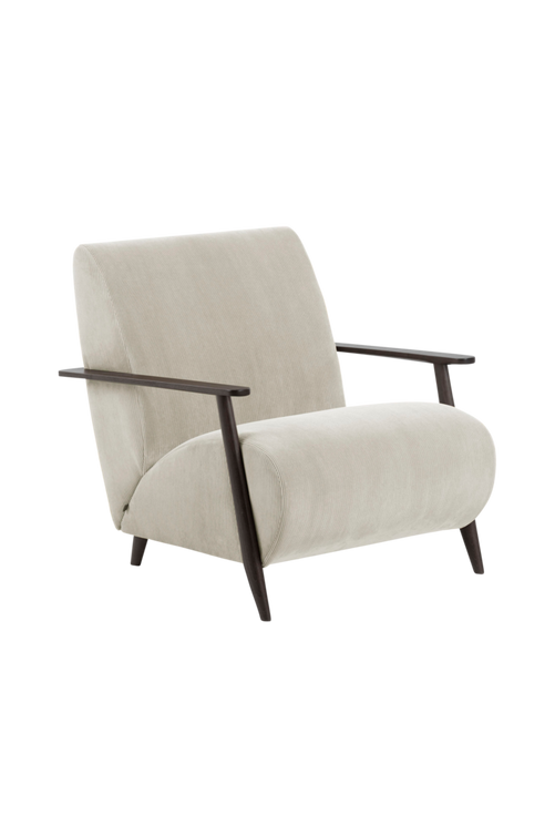 Denna fåtölj är en av de senaste modellerna från Meghan-kollektionen. Klädd med manchestertyg och med en stomme av ask med wenge-finish som följer den trenden med inspiration från 1950-talet. Bredd 77 cm, djup 83 cm och höjd 78 cm.